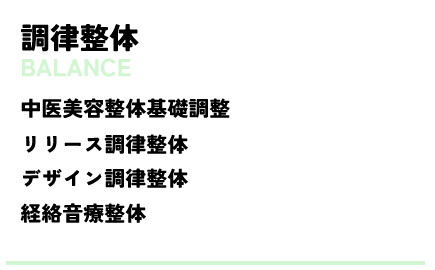 中医の基本概念である「自分のベストバランス」を知り、偏ったり不足したり歪んだ状態を自然に違わない力で調整し、健やかな美しさを魔法のように引き出す、それが「調律美容整体」の概念です。